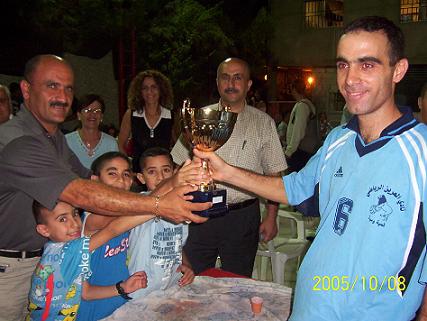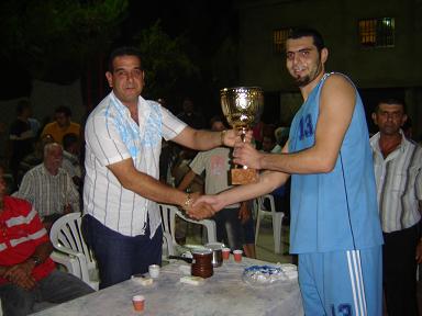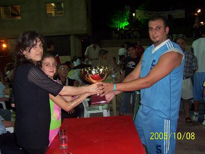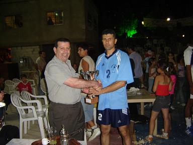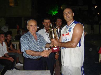 Daher giving the winner's cup to Bahjat Chidiak, a famous Basketball player,